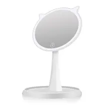 Cat ears shape design makes this mirror cute and unique. The LED circle light that simulates daylight for better color accuracy allows you to clearly see every spot on your face even at night, help you create a more meticulous makeup. The base includes a storage section so you can store your earrings, necklaces, makeup brushes, and other smaller accessories in, which makes your table look clean without clutter. It is a perfect gift for girls and women.