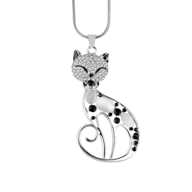 Opal Stone Rhinestone Cat Pendant Necklace for Women