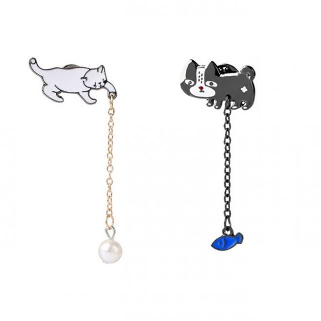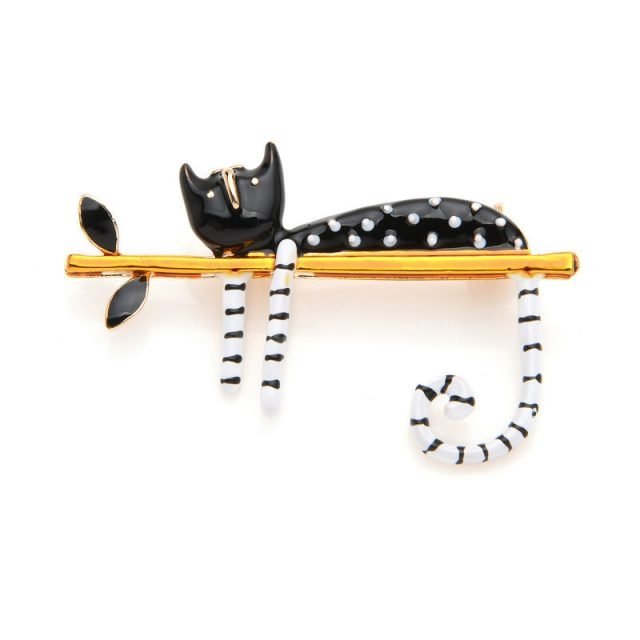 Happy Cat Fish Bones Enamel Pendant Women Necklace