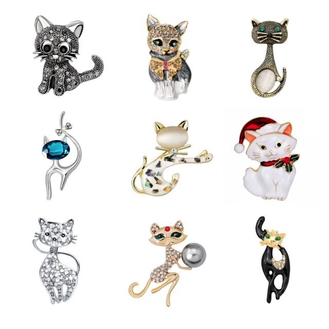 Silver Plated Rhinestones Crystal Cute Cat Pendants Necklaces Fashion Summer Choker Bowknot Necklaces for Lady Animal Black