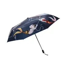 Our folding umbrella comes in bright colors and features an eye-catching design of three playful mermaid cats messing with a tabby