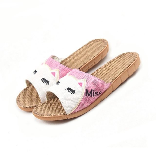 Cat Miss Linen Slippers for Women